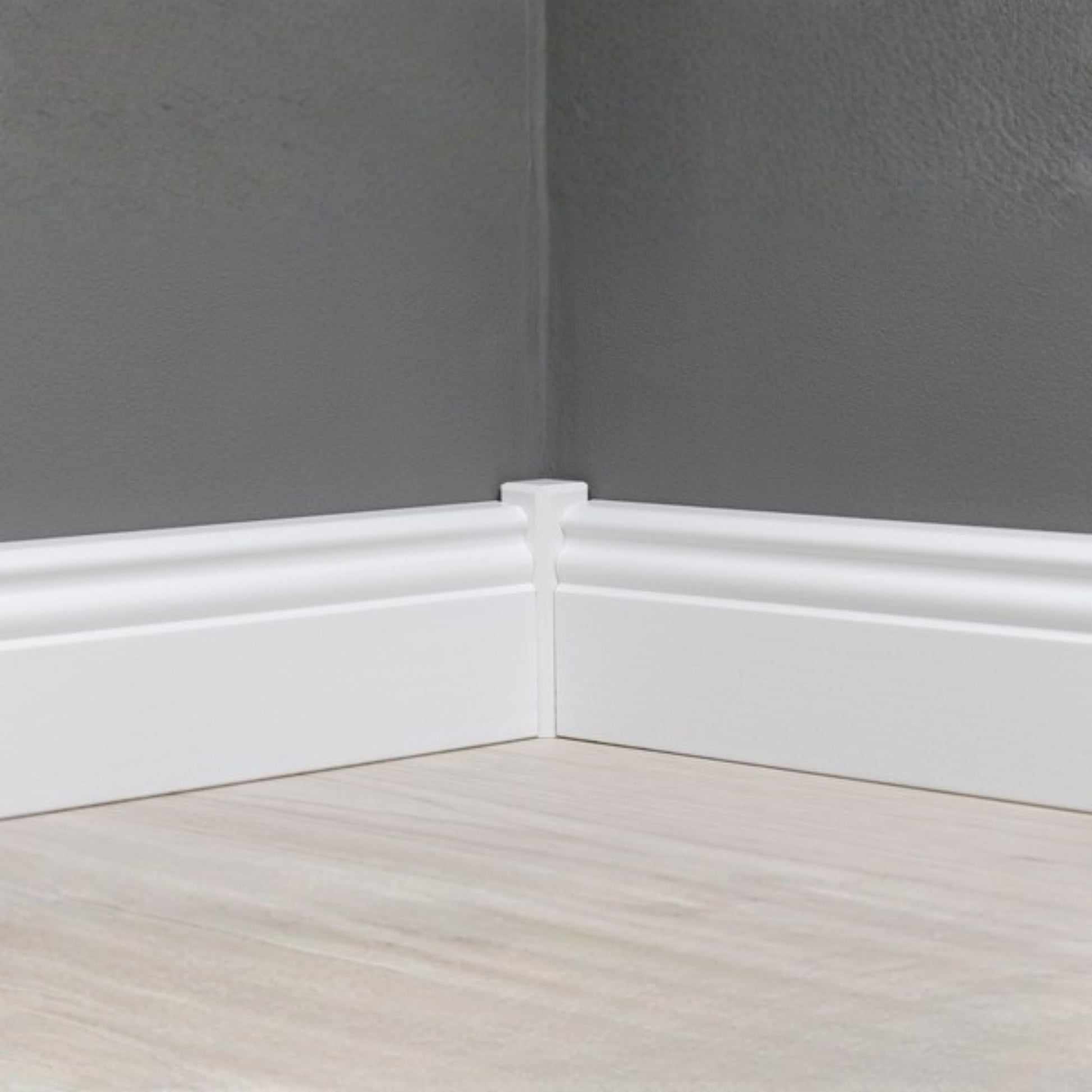 Das Echtholz-Kiefer-Trägermaterial ist weiß lackiert und passt zu allen Bodenarten. Die Leiste ist robust, formstabil und pflegeleicht.