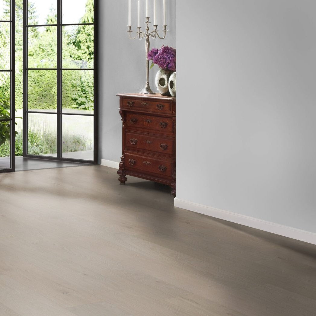Hywood Eiche Ordesa ist ein innovativer Hybridboden von ter Hürne, der die natürliche Schönheit echten Holzes mit außergewöhnlicher Widerstandsfähigkeit vereint.