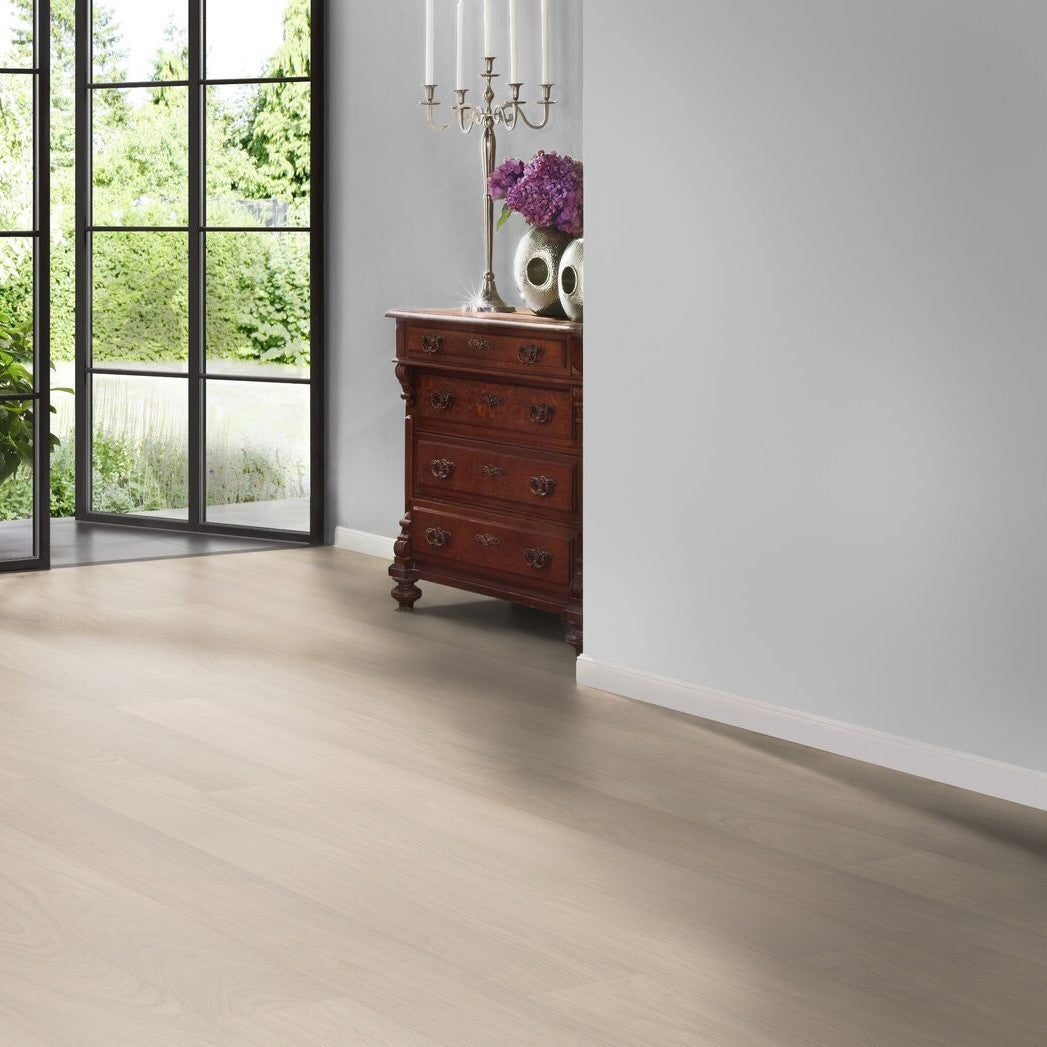 Hywood Eiche Una ist ein innovativer Hybridboden von ter Hürne, der die natürliche Schönheit echten Holzes mit außergewöhnlicher Widerstandsfähigkeit vereint.